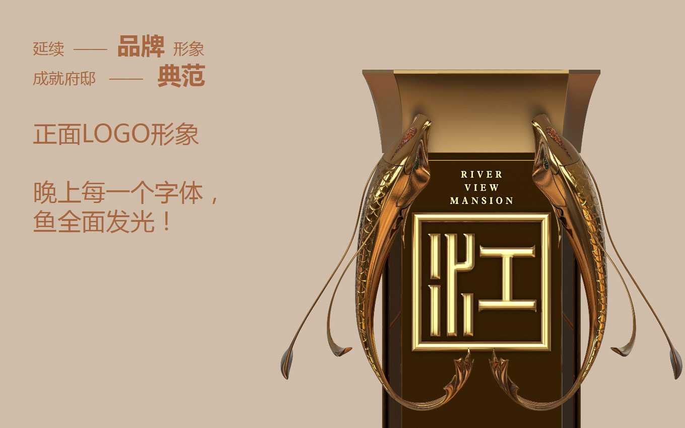 碧桂園閱江府地產標識魚的全面發光,正面LOGO形象的完美呈現。