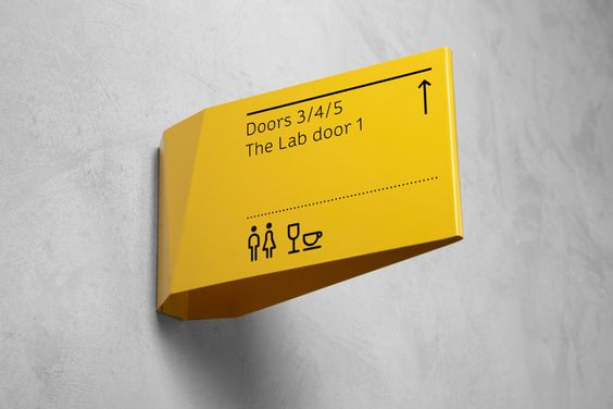 黃色三邊形的箭頭指引與衛生間標識結合的標牌制與安裝。
