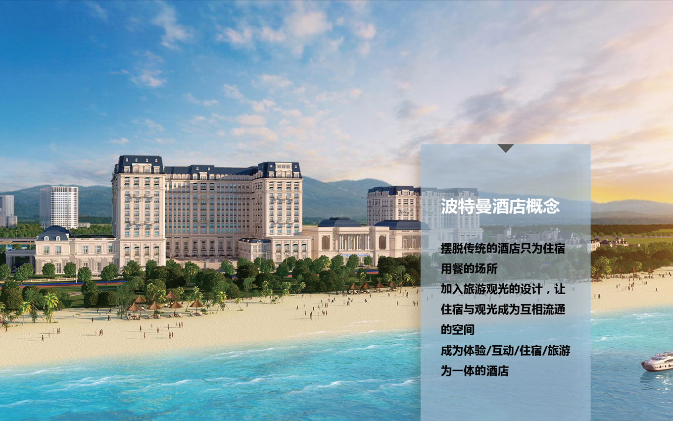 法蘭西經(jīng)典皇室風情之濱海酒店,擺脫傳統(tǒng)的酒店只為住宿用餐的場所加入旅游觀光的設(shè)計,讓住宿與觀光成為互相流通的空間,成為體驗/互動/住宿/旅游為一體的酒店。