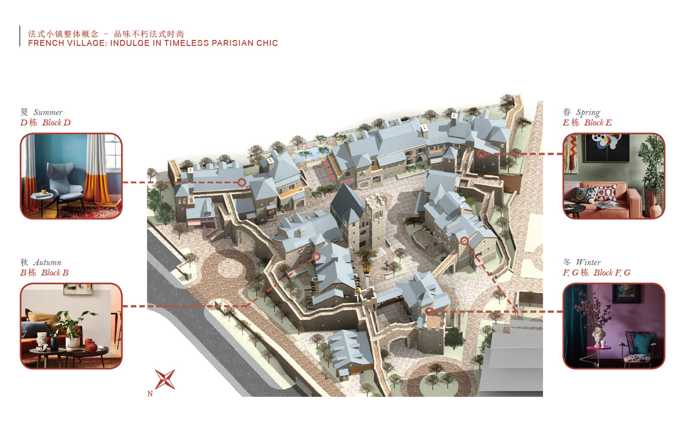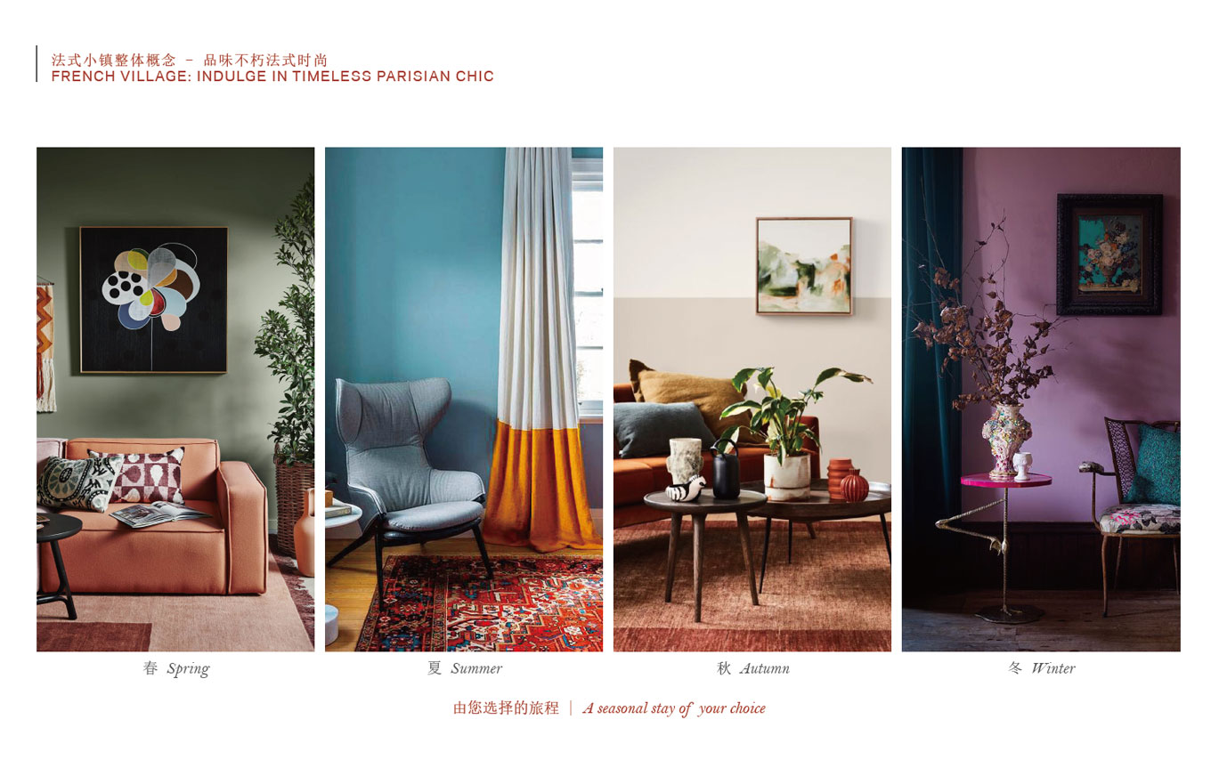 廈門特房法式小鎮(zhèn)以春夏秋冬四種不同風格的標識來創(chuàng)意。